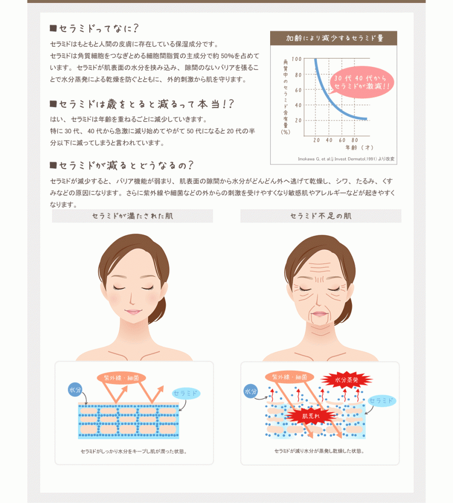 その中でも年齢と共に減りやすいセラミド3、セラミド6Ⅱが豊富に配合されています